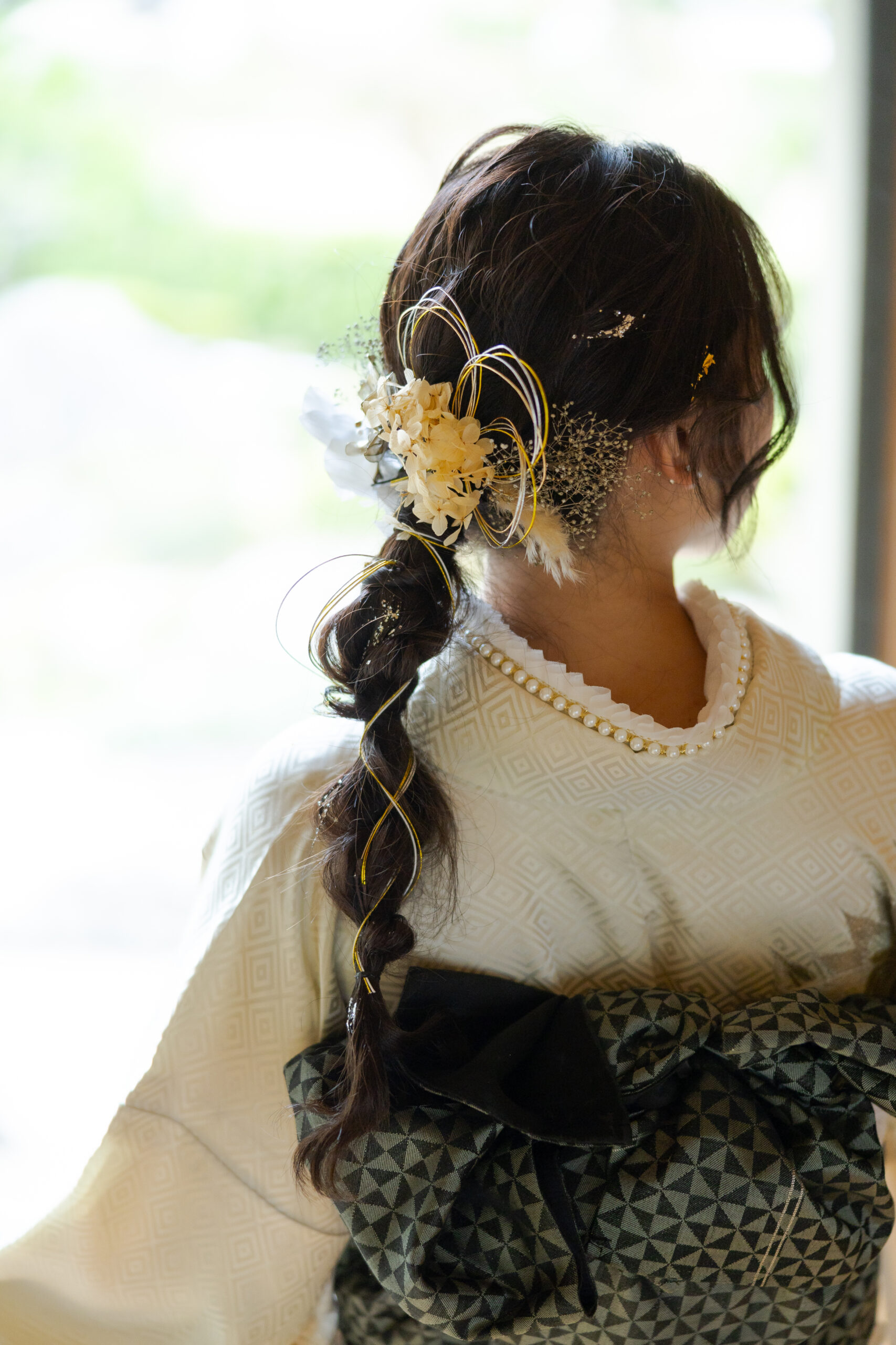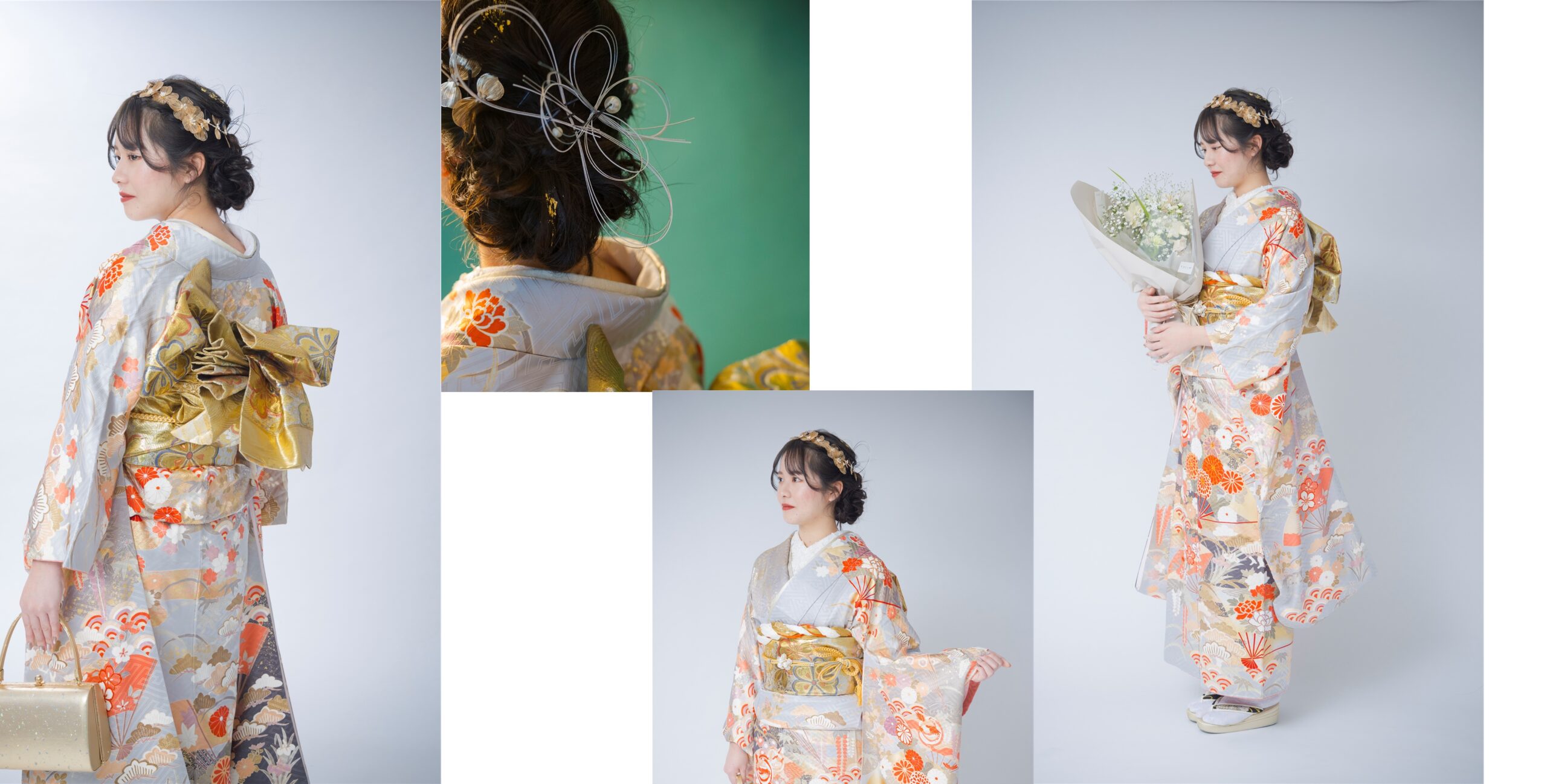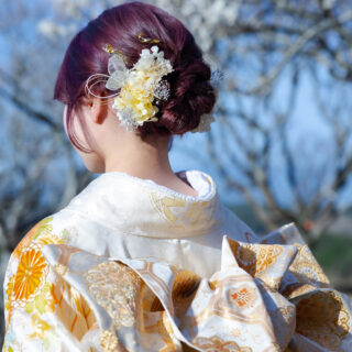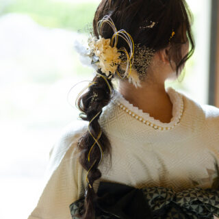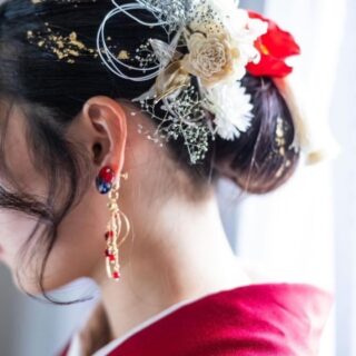 フェリースの振袖レンタルはヘアメイクはもちろんですが、着付け・前撮り・当日撮影すべて込みの値段でございますヘアアクセサリーはオーダーメイドでお一人お一人にカスタマイズいたします。